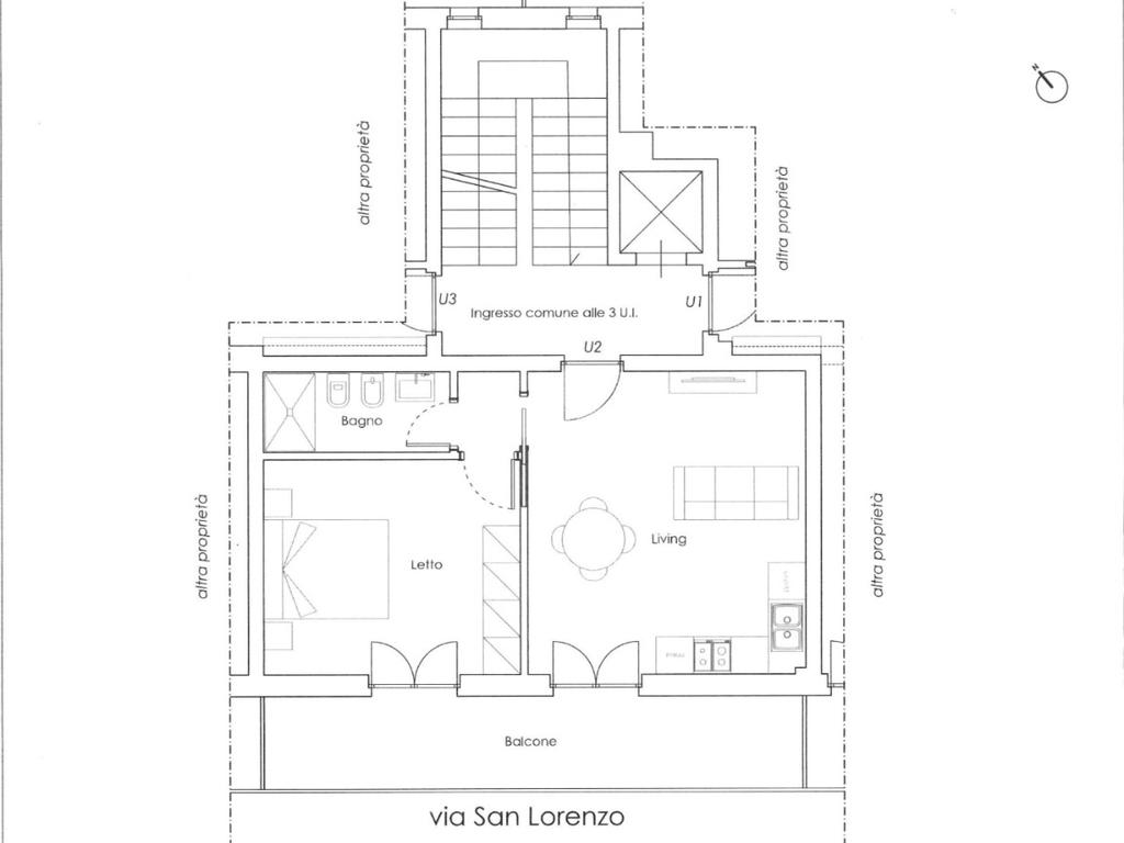 L'IMMOBILE SARA' COMPOSTO DA INGRESSO CON SOGGIORNO A VISTA CON ANGOLO COTTURA CON BALCONE ESTERNO SU VIA SAN LORENZO, CAMERA CON BALCONE ESTERNO SU VIA SAN LORENZO E BAGNO AD AREAZIONE FORZATA.