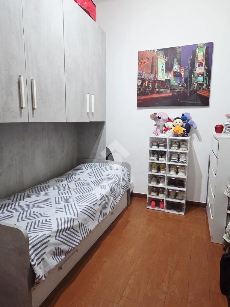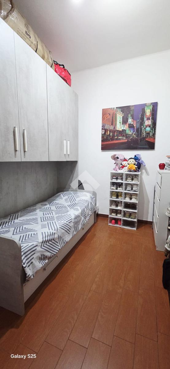 La zona notte è ben distinta e comprende una camera da letto matrimoniale con balcone esterno, che regala luminosità naturale e uno spazio affacciato sul contesto circostante, e una cameretta versatile, ideale come stanza per bambini, studio o ambiente ospiti.