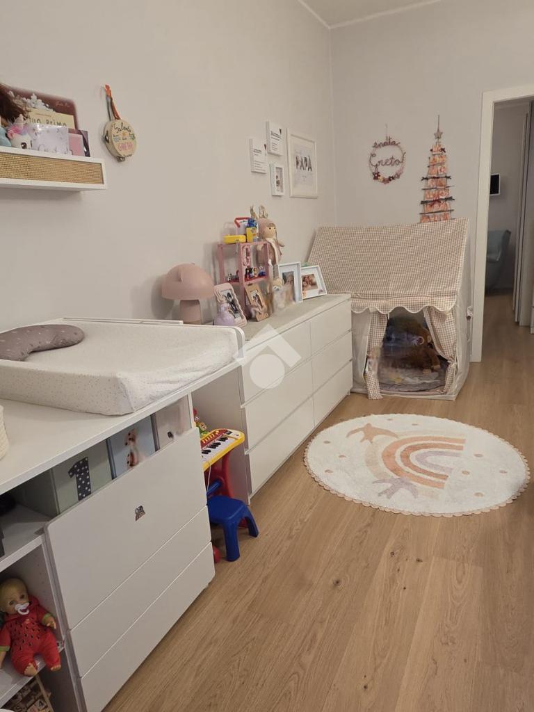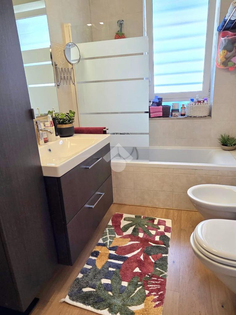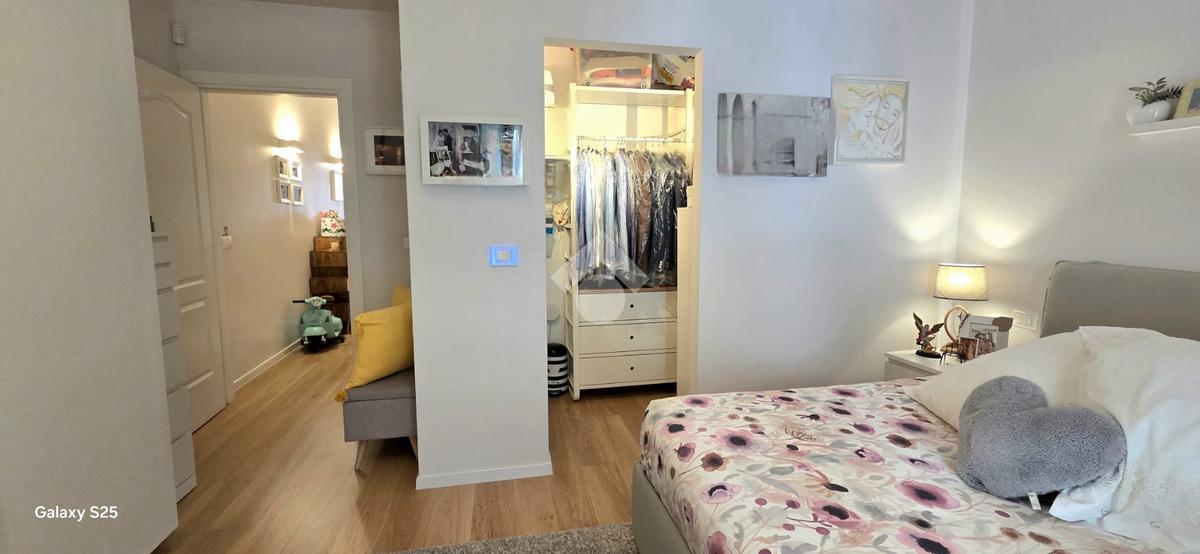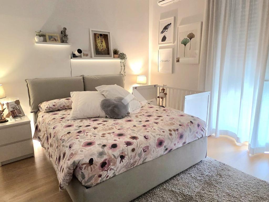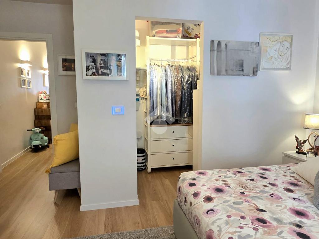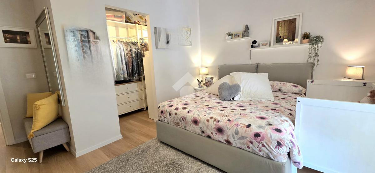 La camera da letto matrimoniale è arricchita da una comoda cabina armadio, soluzione pratica per organizzare al meglio gli spazi. Il bagno finestrato garantisce una piacevole ventilazione naturale e maggiore luminosità.